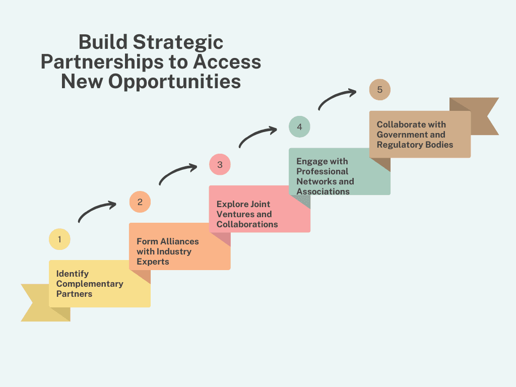 • Form Alliances with Industry Experts : Partnering with industry experts, such as architects, engineers, and consultants, can enhance your project’s quality and credibility. These alliances can also provide valuable insights and guidance, helping you navigate complex projects and regulatory challenges more effectively.