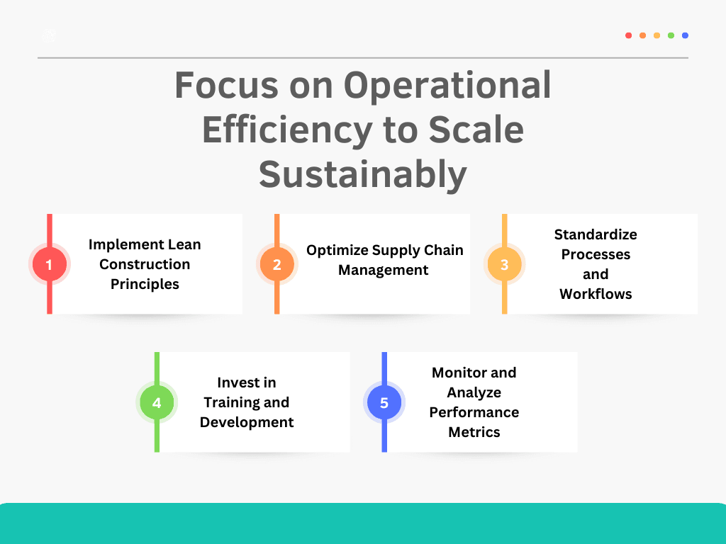 • Standardize Processes and Workflows : Standardizing processes and workflows across your projects can help maintain consistency and efficiency as your business scales. Develop standardized procedures for common tasks, such as project planning, procurement, and quality control, and ensure that all team members are trained in these processes.