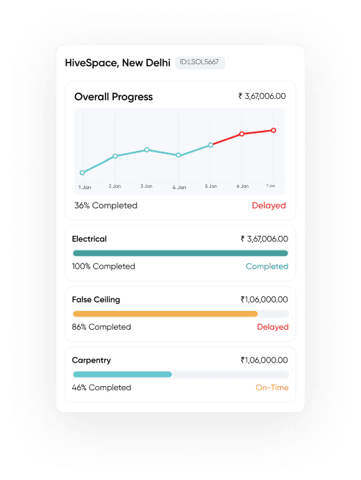 General contractors in civil, interiors and specialty contractor of trades can manage their client projects and track progress from field.