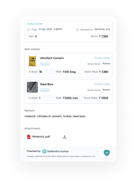 Get realtime progress of work updates from field around Work items, activities, manpower & obstacles.