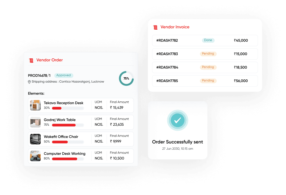 Create your vendor pool, do RFQs, Release quick orders, set payment terms and keep track of their deliverability & performance.