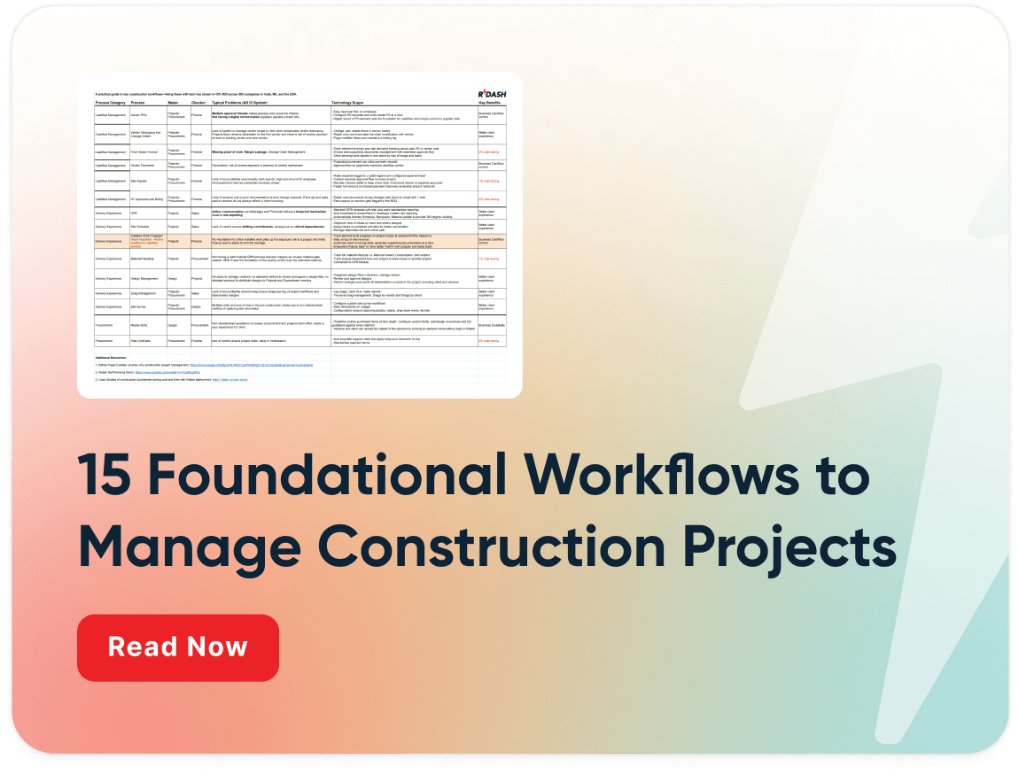Working closely with over 300+ construction companies across India and the Middle East over the last three years, we’ve crystallised 15 foundational workflows essential for construction efficiency. These workflows consistently: