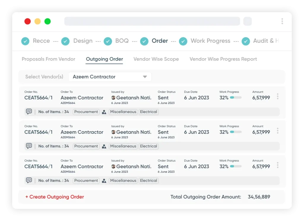 Majority of margin leakage in construction projects traces back to not having a digital record of order elements issued to vendors. For HDFC, we moved the entire ordering process off Excel and email.